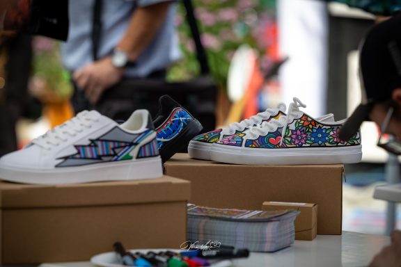 Bei dieser Veranstaltung konnten die Zuschauer hautnah miterleben, wie ich die Schuhe bei einem Live-Painting bemalte. Diese wurden anschließend für eine Tombola versteigert.