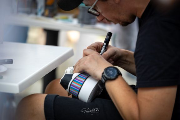 Bei dieser Veranstaltung konnten die Zuschauer hautnah miterleben, wie ich die Schuhe bei einem Live-Painting bemalte. Diese wurden anschließend für eine Tombola versteigert.