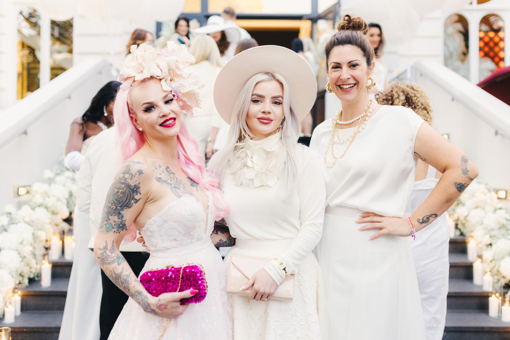 Bei der Veranstaltung "White Explosion" hatten alle Gäste elegante weiße Outfits an. Damit wollten sie alle Toleranz, Liebe, Hoffnung und Weltfrieden einstehen. Unter anderem waren da: Patricia Riekel, die früher Chefredakteurin bei BUNTE war und die Tribute to Bambi Stiftung mitgründet hat, die Schauspielerin Christiane Leuchtmann und Nina Petri, die Moderatorin Madita van Hülsen und Dany Michalski, Model und Unternehmerin Natalia Yegorova, Profitänzerin Christine Deck, Star-Visagistin Serena Goldenbaum. Um einige zu nennen.