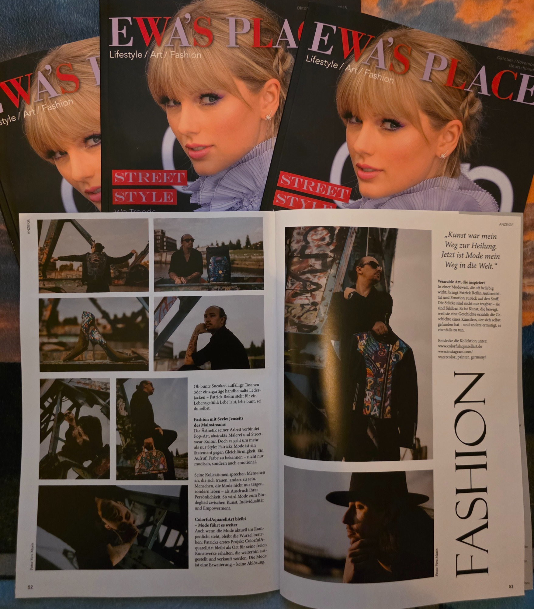 Werfen Sie einen Blick auf die aktuelle Oktober / November Ausgabe des Ewas Place Magazin, in der ich vertreten bin. Ich bin äußerst stolz auf diese Veröffentlichung. In deiesem Artikel erfahren Sie mehr über meine künstlerischen Anfänge und meine Motivation, mit der Malerei zu beginnen.